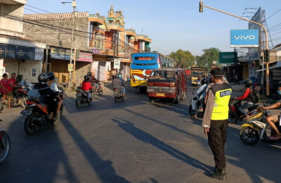 Polres Demak News – Anggota Polsek Karangawen Polres Demak hadir setiap pagi dilokasi yang dianggap rawan kecelakaan dan rawan kemacetan guna untuk memberikan pelayanan kepada masyarakat yang hendak melakukan aktifitasnya di pagi hari, Selasa (28/07/20).